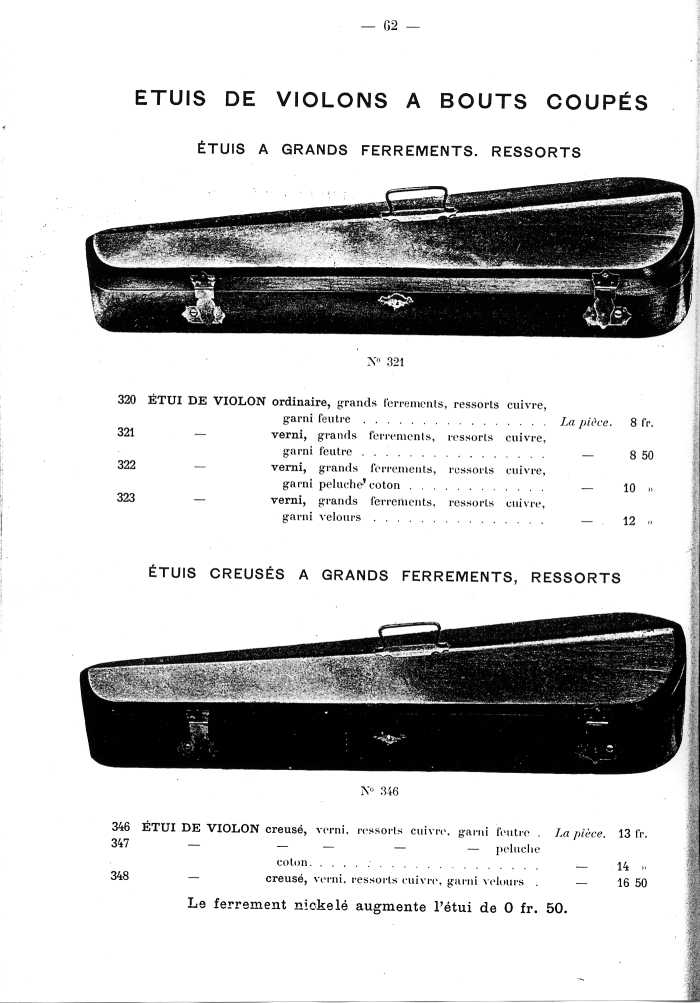 Catalogue Laberte-Humbert 1905. - 3ème partie : Etuis, archets, accessoires, cordes et outillage. Pages 61 à 104. Retour : - 1ère partie : Mandolines. Pages 1 à 38. Retour : - 2ème partie : Instruments à cordes frottées. Pages 39 à 60. Patience... Les documents s'affichent lentement !